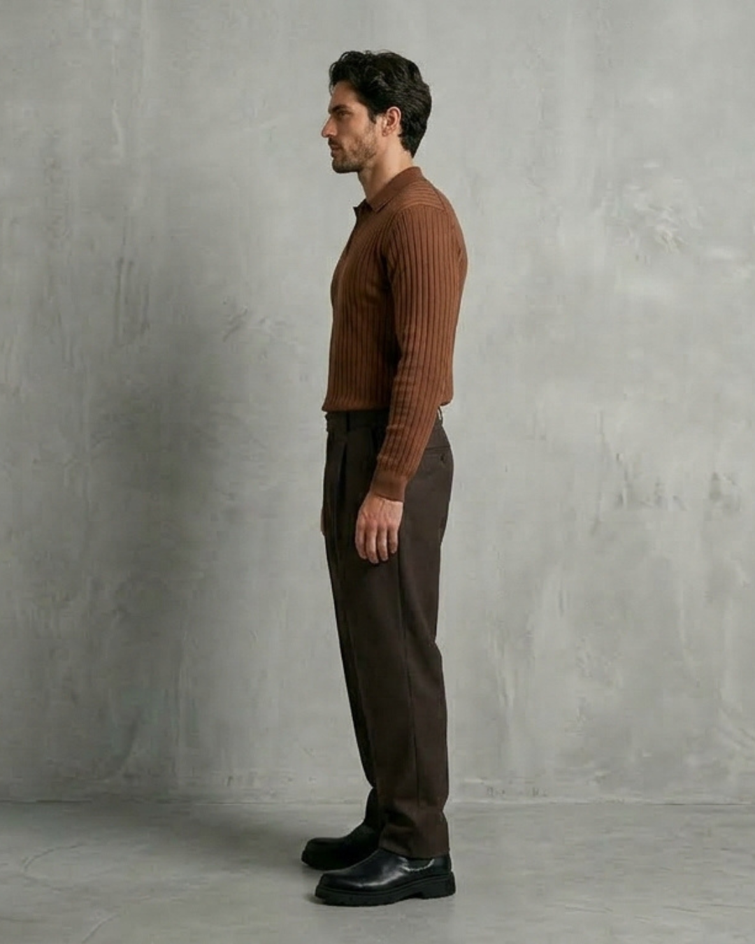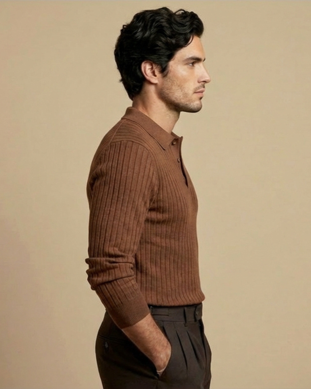 El elemento central de su diseño es el cuello tipo polo clásico, que añade un toque de elegancia deportiva a la pieza.