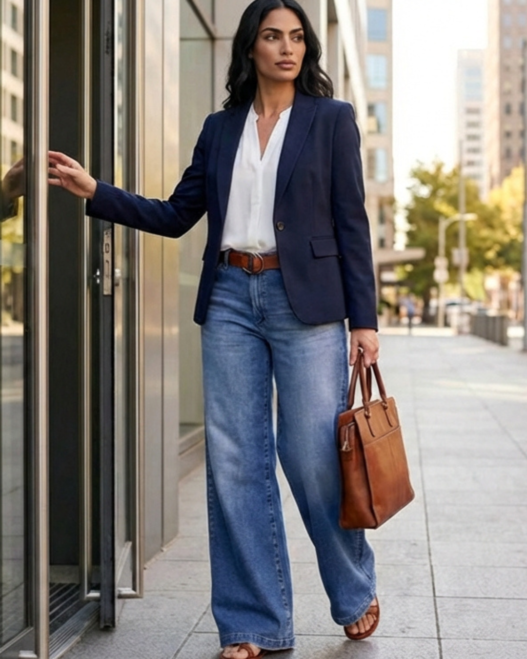Su diseño holgado aporta un aire relajado pero sofisticado, ideal para un look moderno y cómodo.
